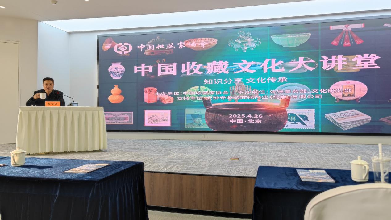 4月26日,由中国收藏家协会主办,法律事务部、文化研究部承办的第二期中国收藏文化大讲堂在北京大钟寺价值品文化产业园圆满落幕。本期活动以“青铜器鉴赏与收藏”为主题,特邀著名文物修复鉴定专家、全形传拓技艺代表性传承人、中国农业博物馆研究馆员贾文忠担任主讲人。中国收藏家协会理事长刘铭威,副理事长李祥、王邦华,部分分支机构负责人参加活动。贾文忠老师用通俗易懂的语言从青铜器基础知识讲起,系统梳理夏商周至秦汉时期青铜器形制演变、纹饰寓意及铭文功能,并围绕中国古代青铜器成为世界艺术品中的黑马、外国博物馆青睐中国古代青铜器的种类、国内博物馆收藏、青铜器概述、铜器类别、青铜器铸造、青铜器出土分布、坑口状况及出土前存在形式、青铜器艺术要素、青铜器专业名词、青铜器鉴定、青铜器收藏和流失、青铜文化延续-全形拓等十二个方面进行了阐述和解读。