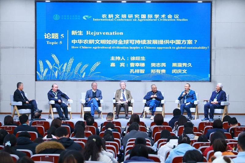 会议以“根脉与新生”为主题,设置“中华农耕文明的智慧传承与当代乡村振兴创新实践”圆桌会议。全国农业展览馆(中国农业博物馆)特聘研究员曹幸穗,西北农林科技大学教授、博士生导师樊志民,东北农林职业大学地区合作推进委员会委员长、教授黑瀧秀久, 中国人民大学吴玉章讲席教授、农业与农村发展学院二级教授孔祥智,中国社会科学院长城学者、当代中国研究所二级研究员郑有贵,全国政协委员、北京市政协常委、中国科学院地理科学与资源研究所二级研究员闵庆文等六位专家围绕“寻根·中华农耕文明的核心内涵是什么”“困境·传统农耕文明在现代化浪潮中遭遇了哪些断层与困境”“转化·如何构建传统农耕智慧与现代农业农村发展的接口”“重构·如何打造制度、科技与文化协同的‘韧性乡村’共生系统”“新生·中华农耕文明能否为全球可持续发展提供‘中国方案’”五个论题进行了系统深入的探讨。全国农业展览馆(中国农业博物馆)特聘研究员徐旺生主持研讨。