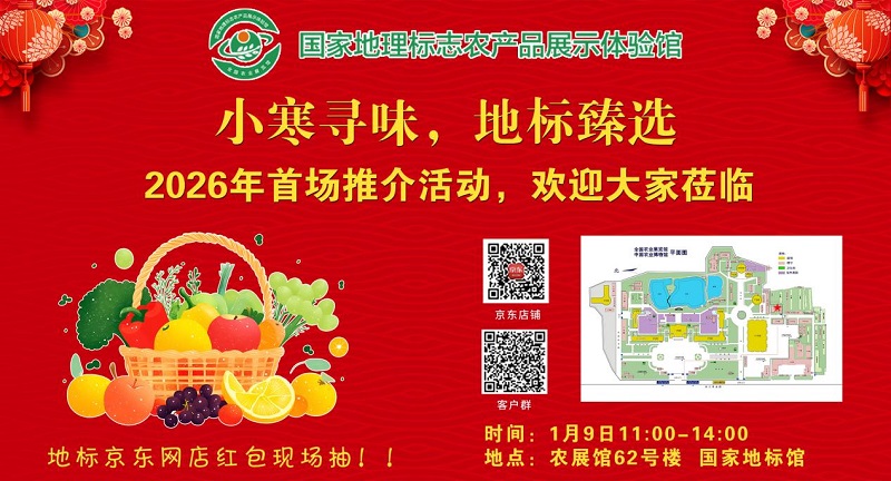 1月9日,开年之际,国家地理标志农产品展示体验馆(以下简称“地标馆”)举办地标企业专场推介活动。活动以“小寒寻味,地标臻选”为主题,集中展示推介新会陈皮、久治牦牛、西下营板栗、英德红茶英红九号、呼兰鸡蛋、岷县蜂蜜、蜂蜜黑芝麻丸、衡阳台源乌莲、桑椹酒、雷波脐橙等多款地标产品。为广大顾客带来了一场融合味觉与文化的盛宴。